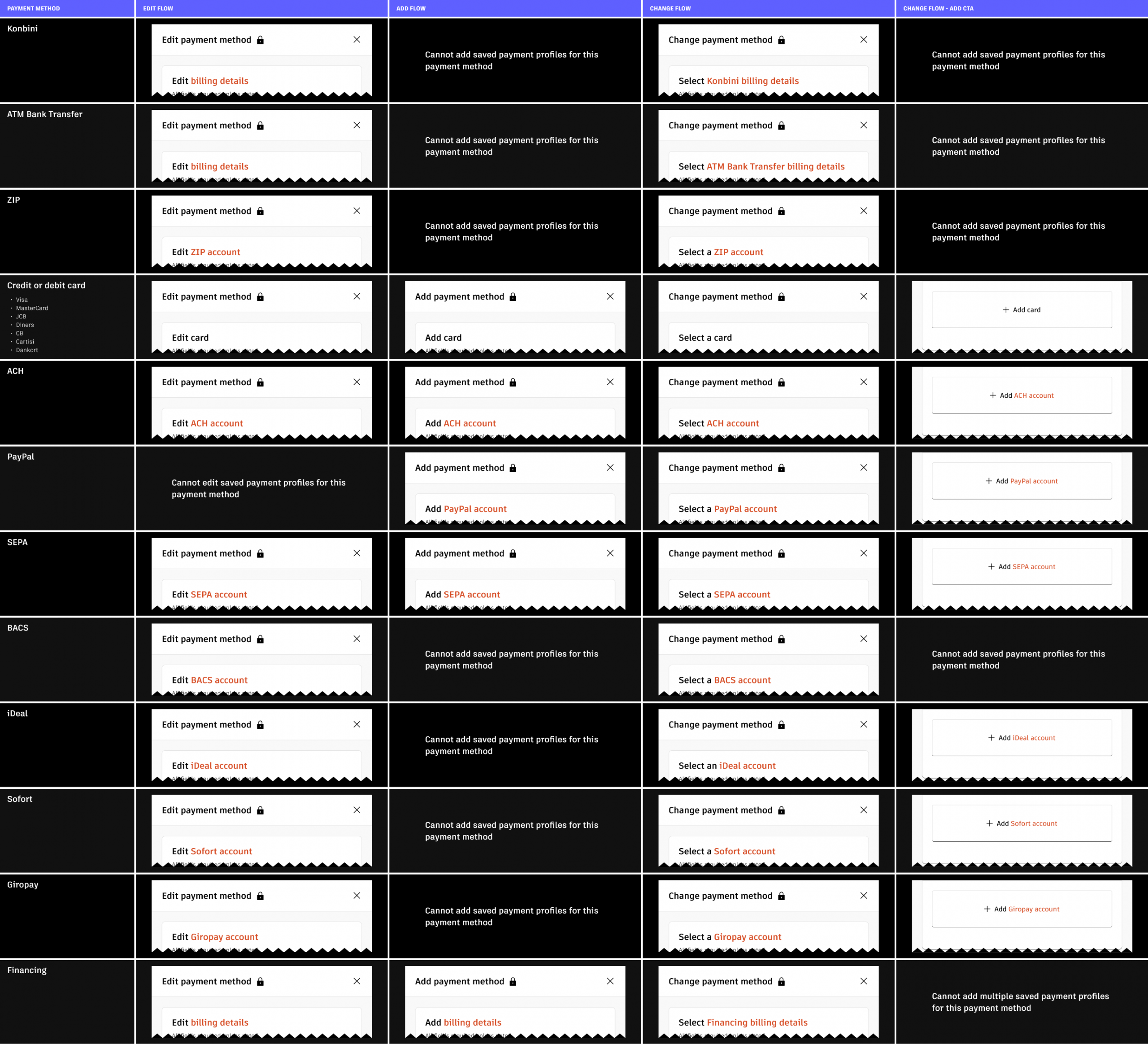 Payment flows and options by country